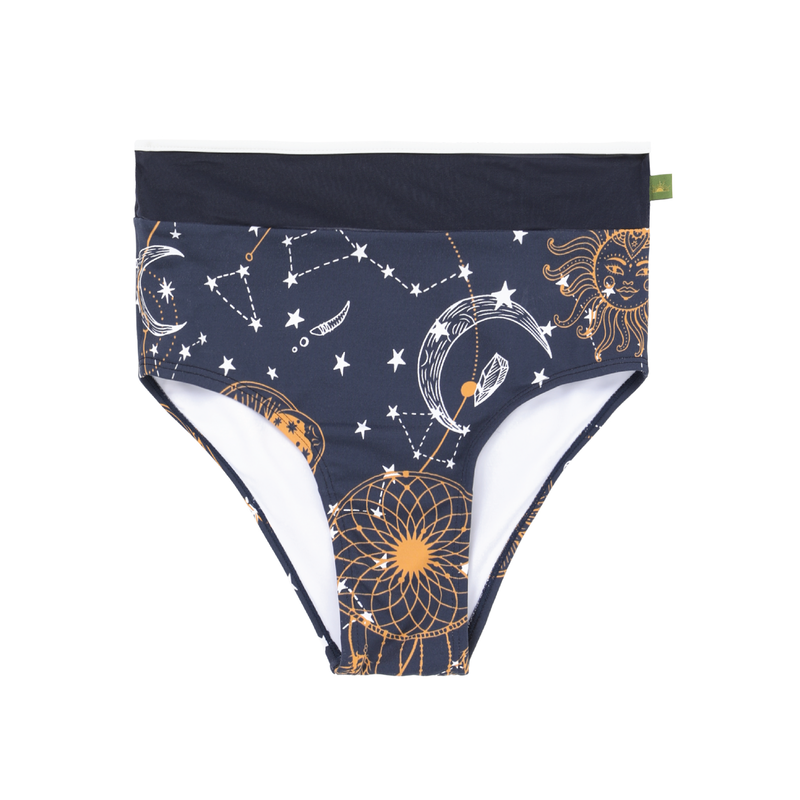 - High-waisted silhouette for secure coverage and a balanced body line
