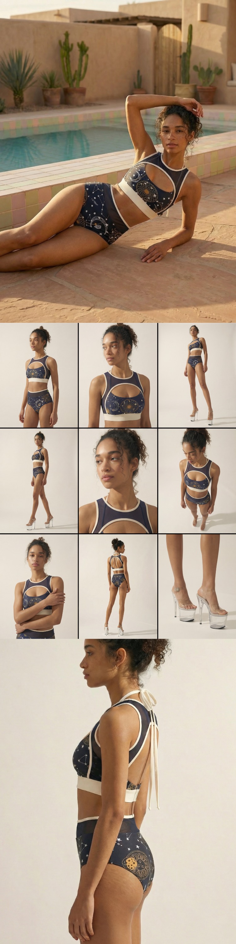 - Halter-tie open back design that highlights the back while staying secure